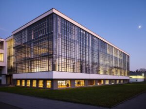 Das Bauhaus Dessau zählt zu den bekanntesten und meistfotografierten Gebäuden Deutschlands und gilt weltweit als eines der bedeutendsten Symbole der Moderne. Es wurde von 1925 bis 1932 als Sitz der berühmten Kunst- und Gestaltungsschule genutzt, deren Ideen Architektur, Design und Kunst nachhaltig beeinflusst und bis heute geprägt haben. Die Schule entstand ursprünglich 1919 in Weimar, in einer Zeit des gesellschaftlichen und kulturellen Umbruchs, nach dem Ersten Weltkrieg. Ihr Ziel war es, Kunst und Technik zu vereinen und Gestaltung für alle Menschen zugänglich zu machen. Das Bauhaus entwickelte sich schnell zu einem Zentrum avantgardistischer Ideen, stieß jedoch aufgrund seiner progressiven Haltung und der politischen Spannungen der frühen 1920er Jahre zunehmend auf Wiederstand.